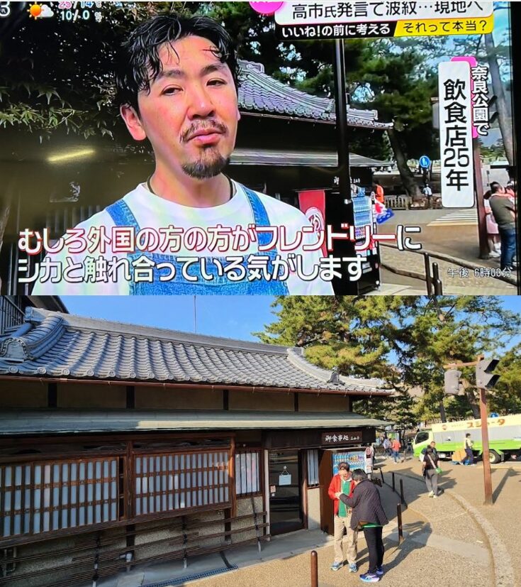 日テレ「news every.」の9月29日放送で、高市早苗氏の「奈良公園で中国人観光客が鹿を蹴る」発言を否定するインタビューとして登場した「飲食店25年歴の男性」が、SNS上で特定されました。
