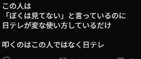 都合の良い部分だけ切り取られたと主張していることがわかります。