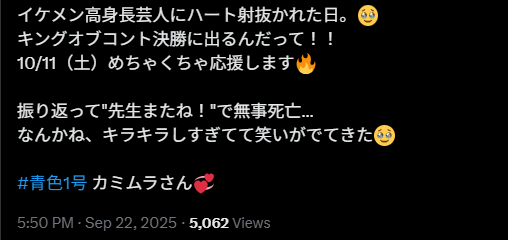 青色1号のカミムラさんは高身長でイケメンと話題になることが度々ありますのでまとめて紹介していきます。