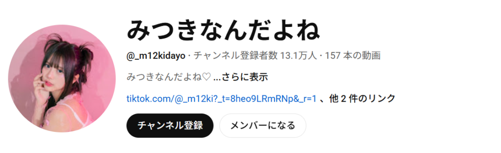 「みつきなんだよね」でロング動画をアップ。メンバーシップを導入し、限定コンテンツを提供しています。