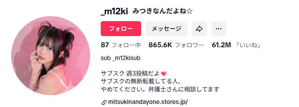 かわいい日常動画やダンス、ファッションなどのコンテンツで知られ、TikTokフォロワー数は77万人を超えるなど、10代を中心に支持を集めています。