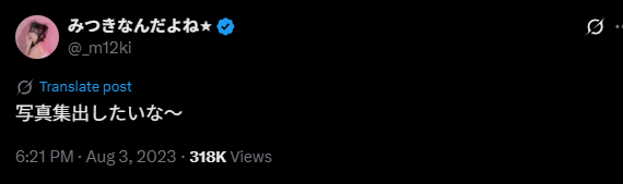 2023年にみつきさんは写真集出したいなとつぶやいています。