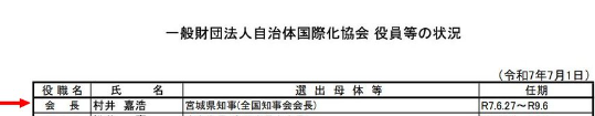 宮城県の村井嘉浩知事が、JICAの関連団体、CLAIR(自治体国際化協会)と深くつながり、