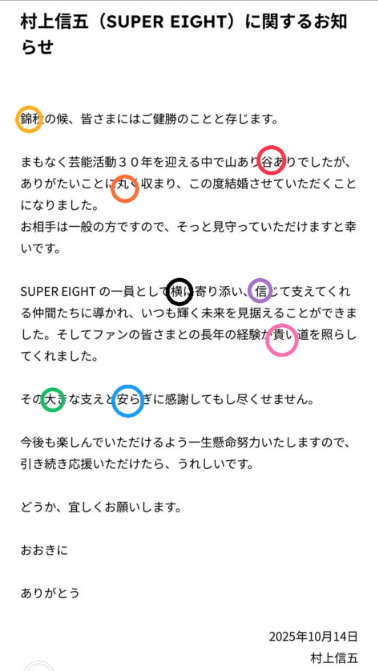 結婚報告コメントが「メンバーの名前入ってる?」話題になっていました。