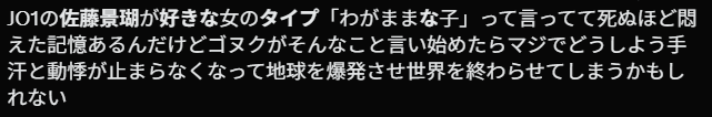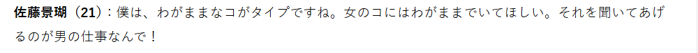 SNSや雑誌などの佐藤景瑚さんの好きなタイプの情報をまとめて紹介していきます。